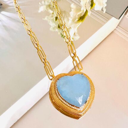 Colar de coração fusion turmalina Paraíba com fecho de zircônia – 2418
