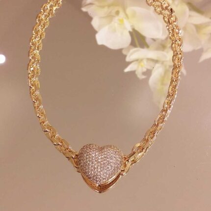 O preço original era: R$174,90.R$69,90O preço atual é: R$69,90.Colar de relicário de coração de zircônia olho – 2361