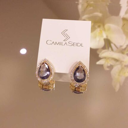 Brinco Gota tanzanita com zircônia – 2672