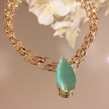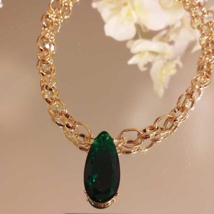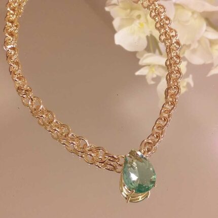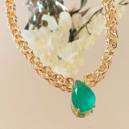 Colar gota esmeralda com elos – 2739