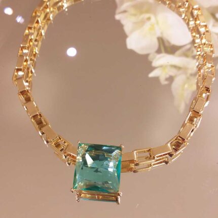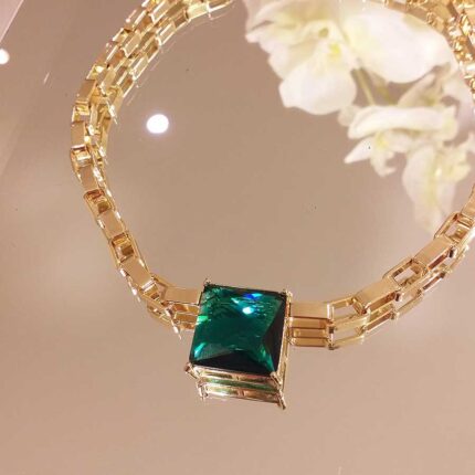 Colar carré esmeralda com elo – 2724