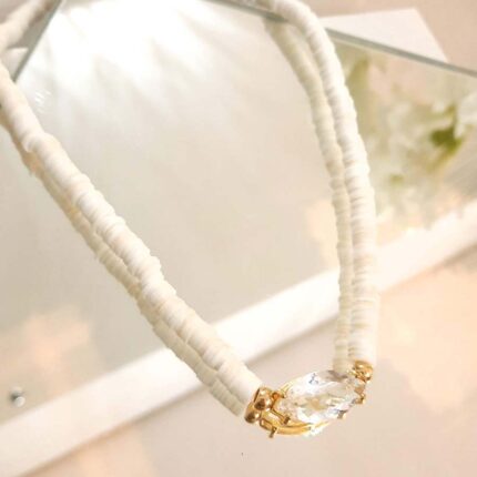 Colar fimo branco e navete cristal – 2562