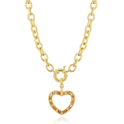 Colar bóia com pingente de coração de baguete rainbow – 166899