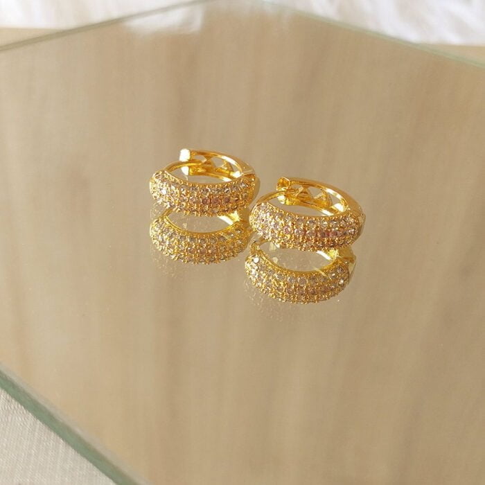 Brinco de argolinha abaulada com 4 fios de micro zircônias banhadas em ouro 18k (1.7cm)