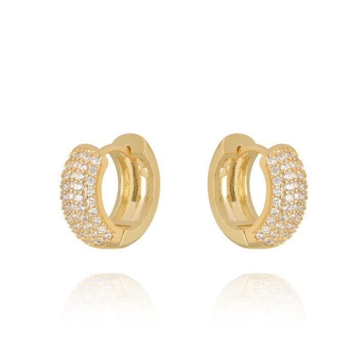 Brinco de argolinha abaulada de 3 fios micro cravejados de zircônias banhadas em ouro 18k (1.5cm)