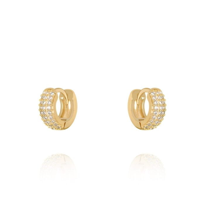 Brinco de argolinha abaulada pequena com 5 fios de micro cravação banhadas em ouro 18k (1cm)