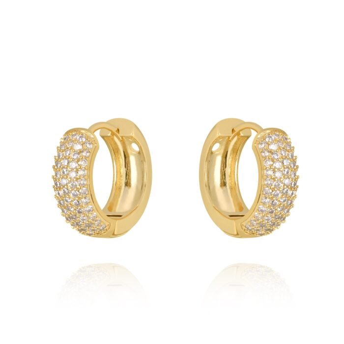 Brinco de argolinha abaulada com 5 fios de micro zircônia banhadas em ouro 18 k (1.5cm)