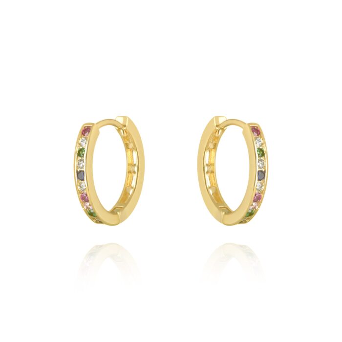 Brinco de argola com 1 fio de zircônias rainbow banhado em ouro 18k (1.5cm)