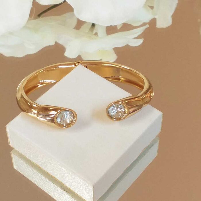 Bracelete com ponta de cristal. Peças banhadas em ouro 18k