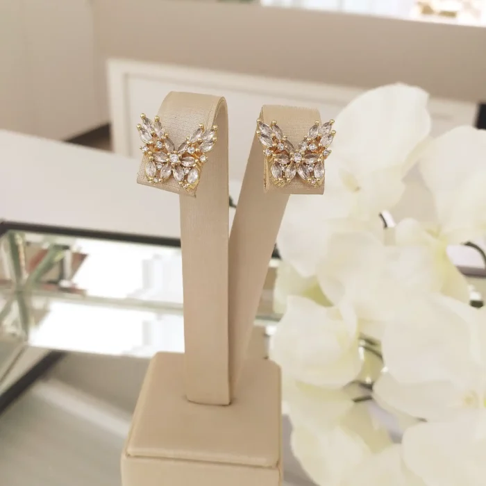 Brinco de borboleta de zircônia banhado em ouro 18k e verniz cataforético ( 1,5 cm)