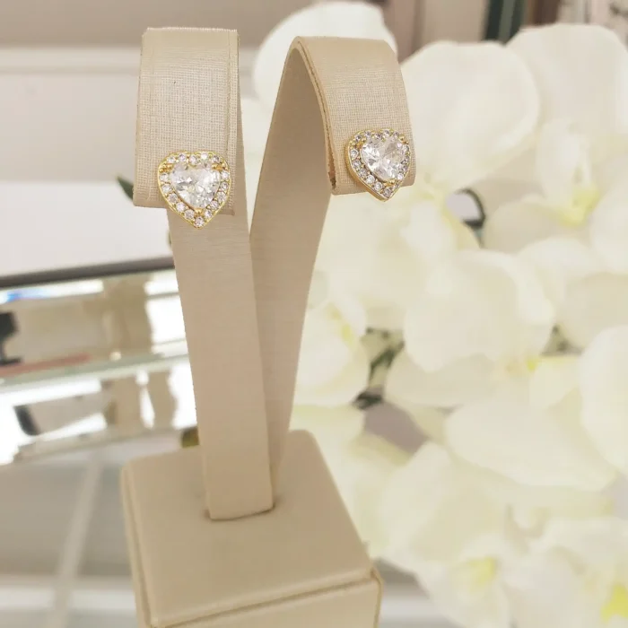 Brinco de coração de zircônia com 1cm banhado em ouro 18k e verniz cataforético