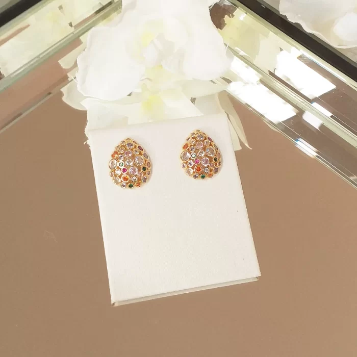 Brinco de gota de bolinhas rainbow. (Peça banhada em ouro 18k)