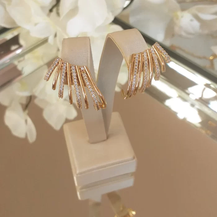 Brinco maravilhoso em linhas degradês lisas e com zircônias banhado em ouro 18 k e 2,1 cm