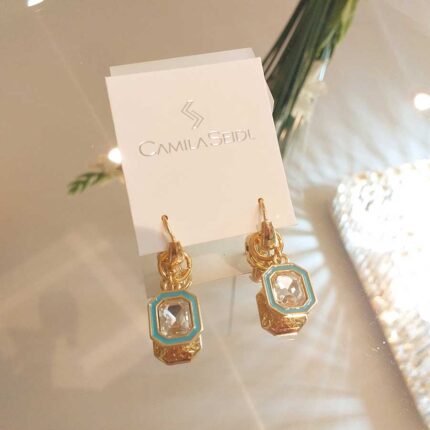 Brinco de linhas com ponto de zircônias. (Peça banhada em ouro 18k)