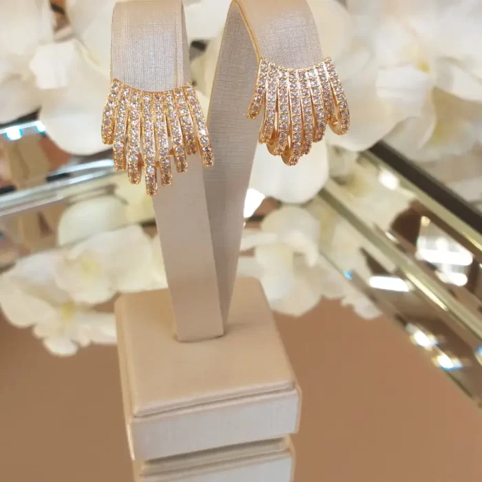 Brinco de linhas de zircônias microcravejadas banhado em ouro 18k.