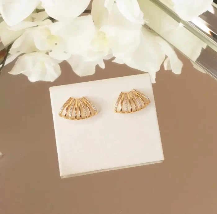 Brinco de linhas de metal com linhas de zirconia cristal. (Peça banhada em ouro 18k)