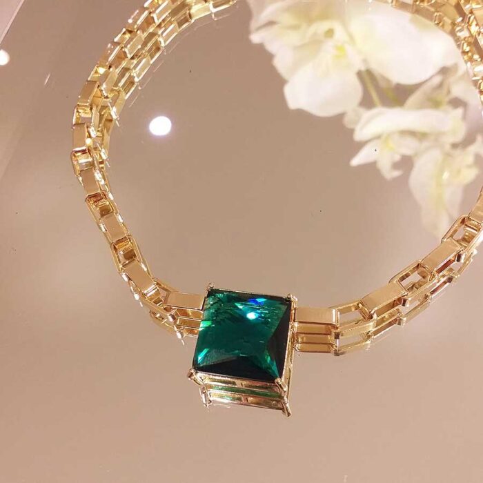 Colar carré Paraíba Brasil com elos italiano (Tamanho: 40 + 5cm extensor). Peça banhada em ouro 18k.