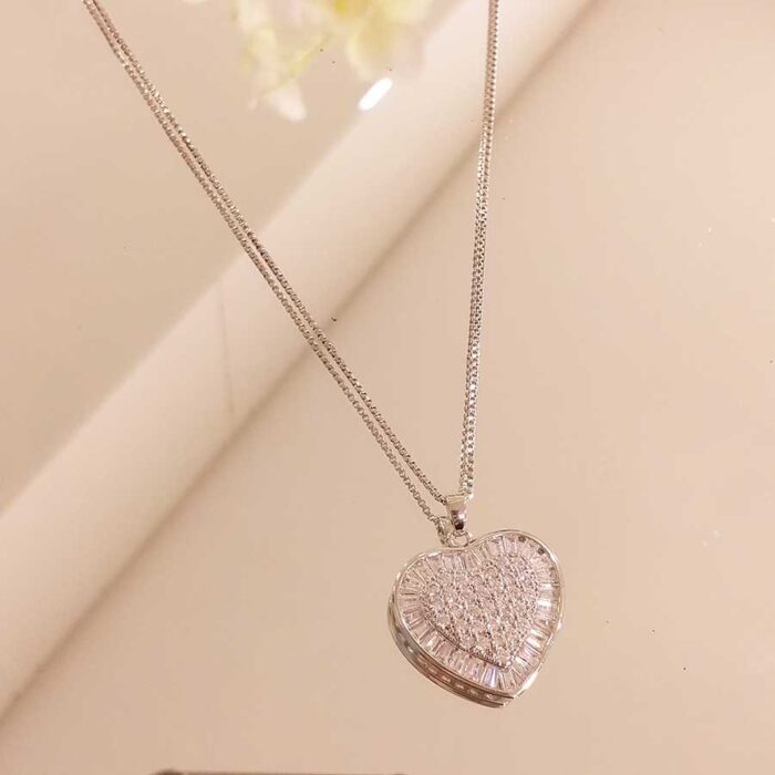 Colar coração de baguete ródio branco – 2612