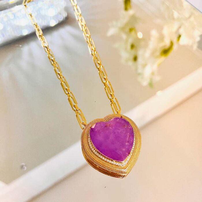 Colar de pingente de coração grande com coração roxo banhados em ouro 18k ( 40cm + 5 cm extensor)