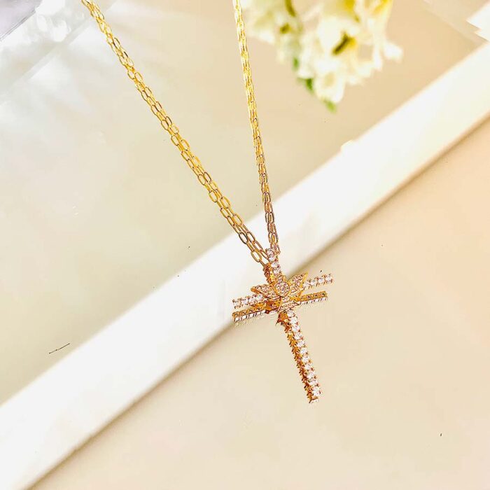 Colar crucifixo com espírito santo banhado em ouro 18k ( 45 cm + 5 cm)