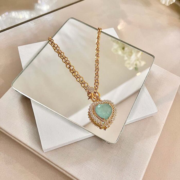 Colar de coração fusion turmalina Paraíba com fecho de zircônia – 2418