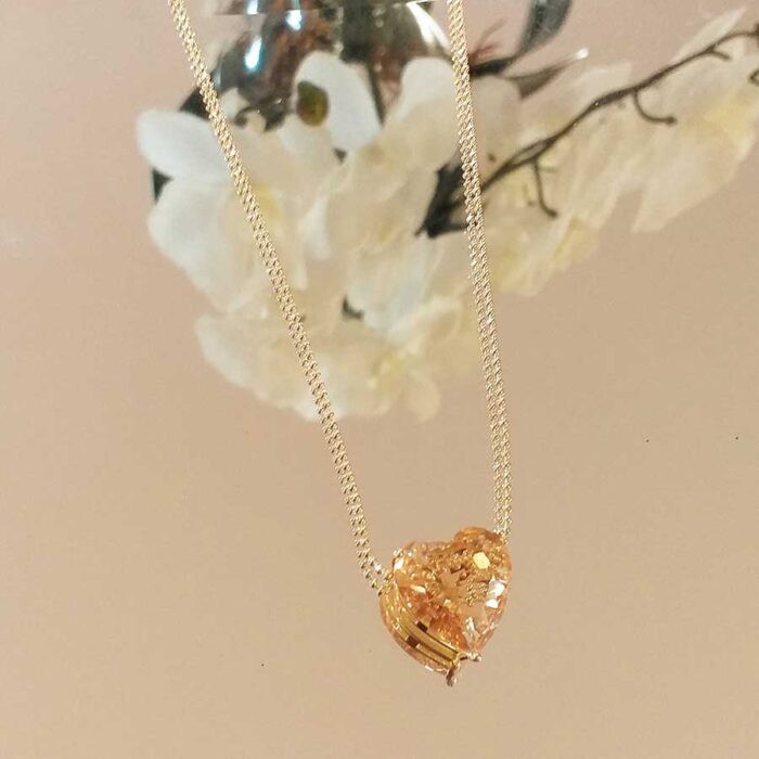 Colar com pingente de coração de zircônia morganita. Peças banhadas em ouro 18k (40 cm + 8 cm extensor)
