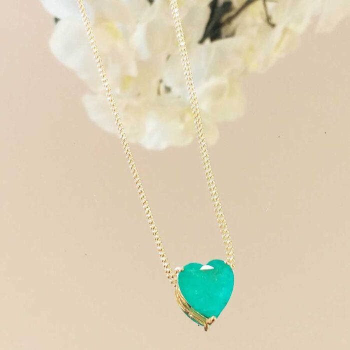 Colar com pingente de coração de zircônia paraíba fusion. Peças banhadas em ouro 18k (40 cm + 8 cm extensor)