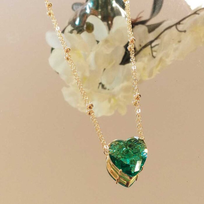 Colar com pingente de coração de zircônia turmalina. Peças banhadas em ouro 18k (45 cm + 8 cm extensor)