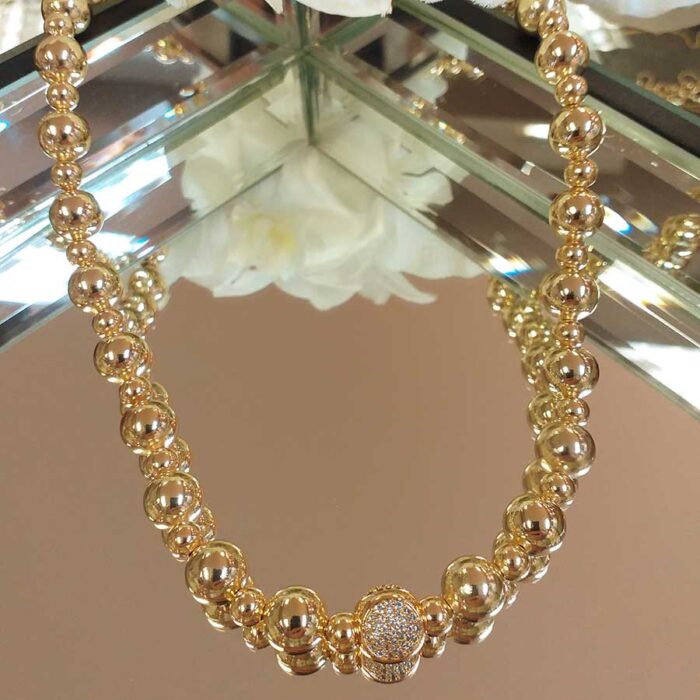 Colar de esferas e bolinha microcravejada – Pea banhada em ouro 18k
