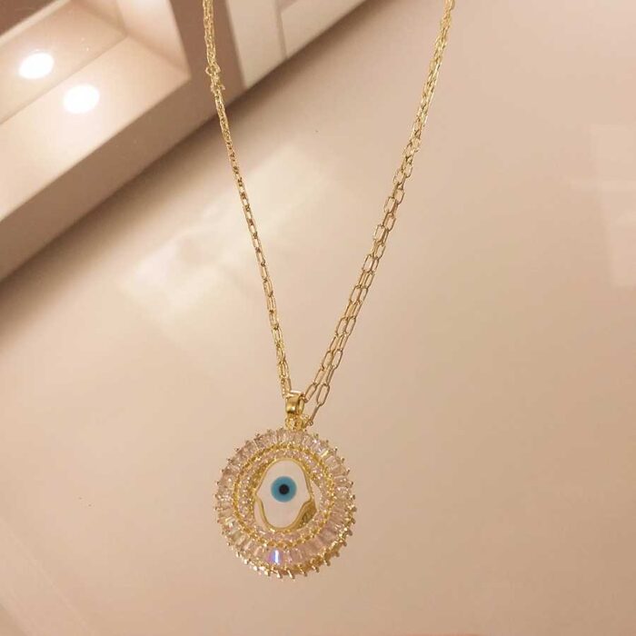 colar de pingente de hamsa e metais banhados em ouro 18k (40 + 5 cm extensor)