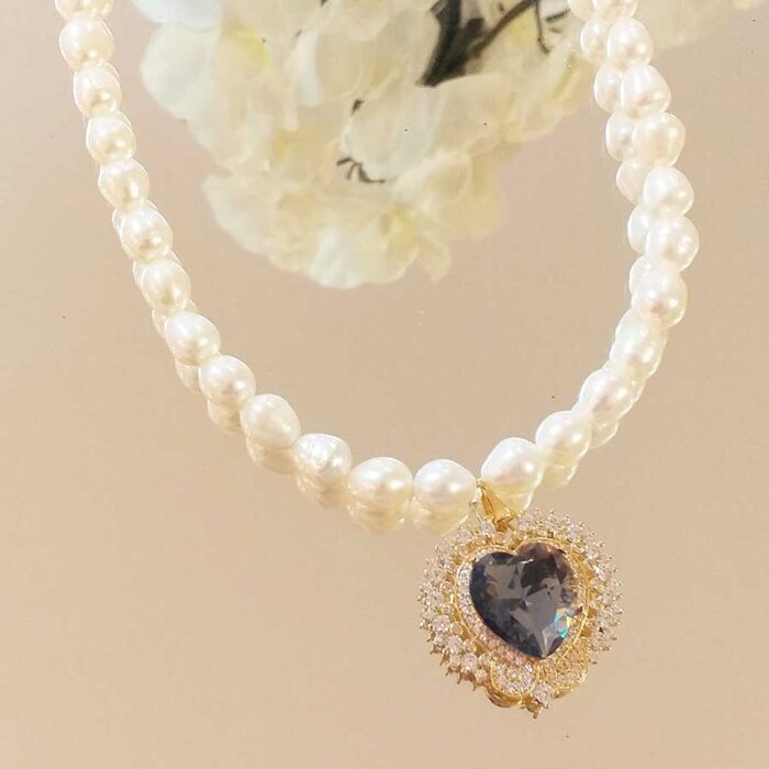 Colar de pérola com coração tanzanita – 2835