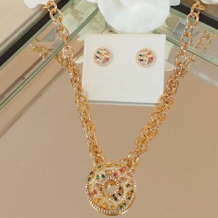Belíssimo colar de elos guaraná com pingente de coração de 32mm maçico.