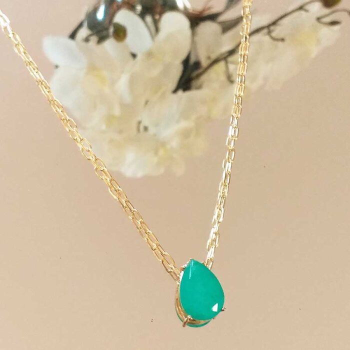 Colar de gota M de zircônia na cor Paraíba Fusion. Peças banhadas em ouro 18k (45 cm + 8 cm extensor)