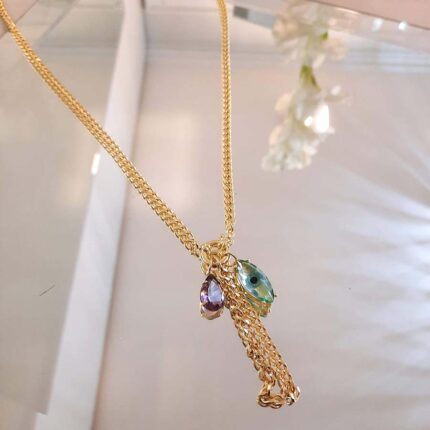 Colar de gota pequena de zircônia na cor crystal.Peças banhadas em ouro 18k (45cm + 8 cm extensor)