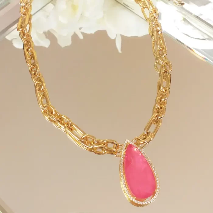 Colar de gota pink fusion com elos. Tamanho 45 + 5 cm extensor (Peças banhadas em ouro 18k)