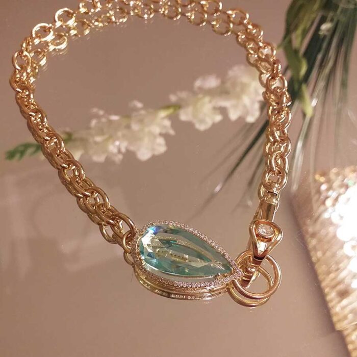Colar gota zircônia água marinha na corrente e fecho – 166338