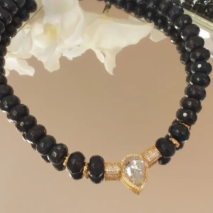 Colar jade azul marinho com gota. Tamanho 40 + 5 cm extensor (Peças banhadas em ouro 18k)