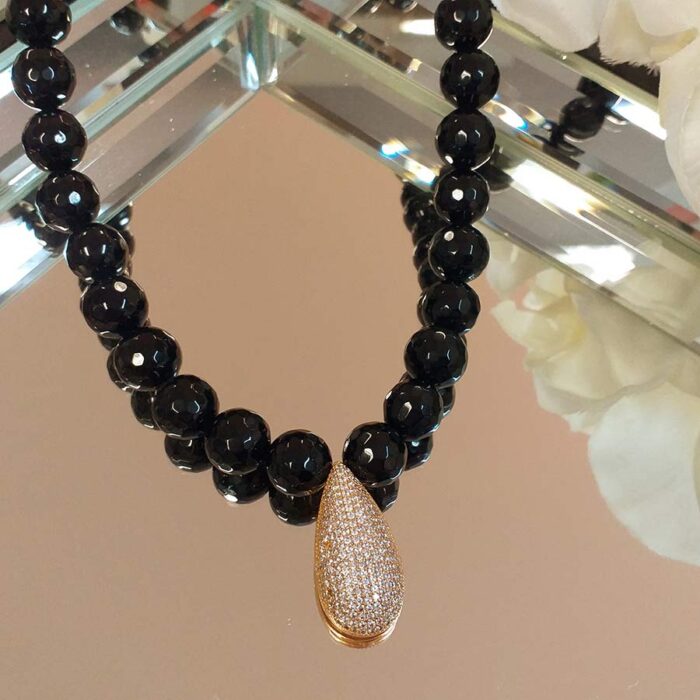 Colar onix facetada com pingente de gota. Peヘa banhada com 10m de ouro 18k