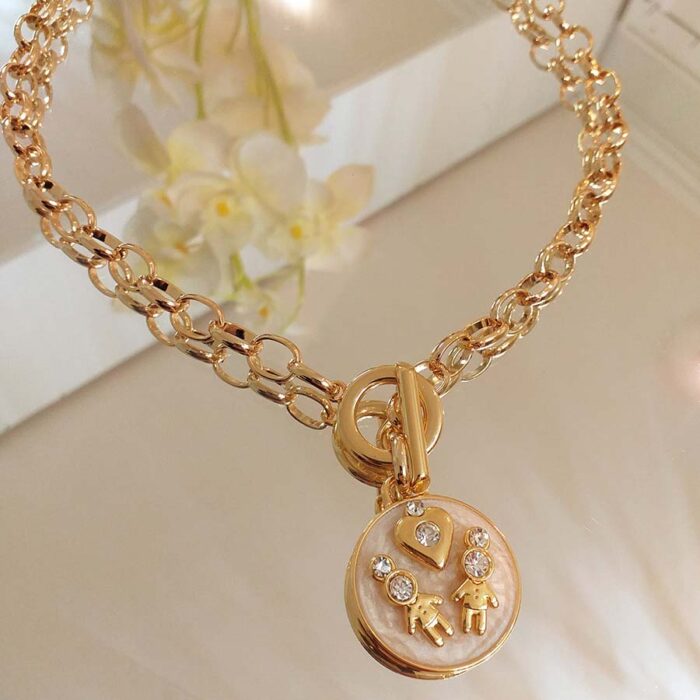 Colar de elos com fecho e pingente de pérola com 2 meninos banhado em ouro 18 k (45 cm)