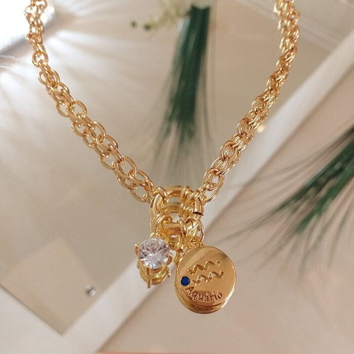 Colar de elos com pingente do signo de aquário banhado em ouro 18k (45cm)