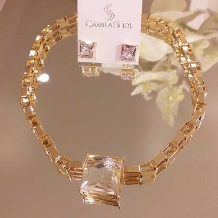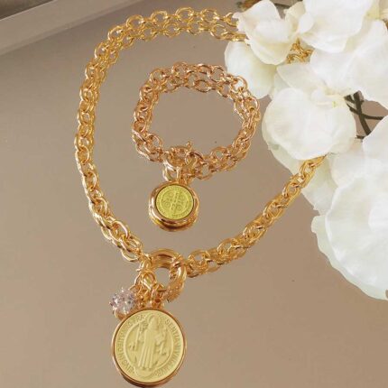 Esse belíssimo conjunto de Espírito Santo rainbow, foi feito para mulheres religiosas e estilosas. Colar e pulseira em elo português. (Peças banhadas em ouro 18k)