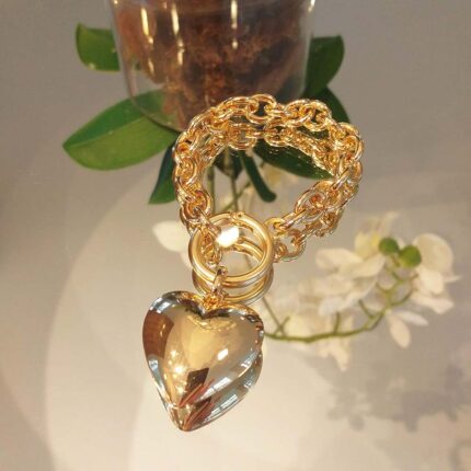 166212 – Pulseira de coração de strass na corrente cartier e fecho de imã