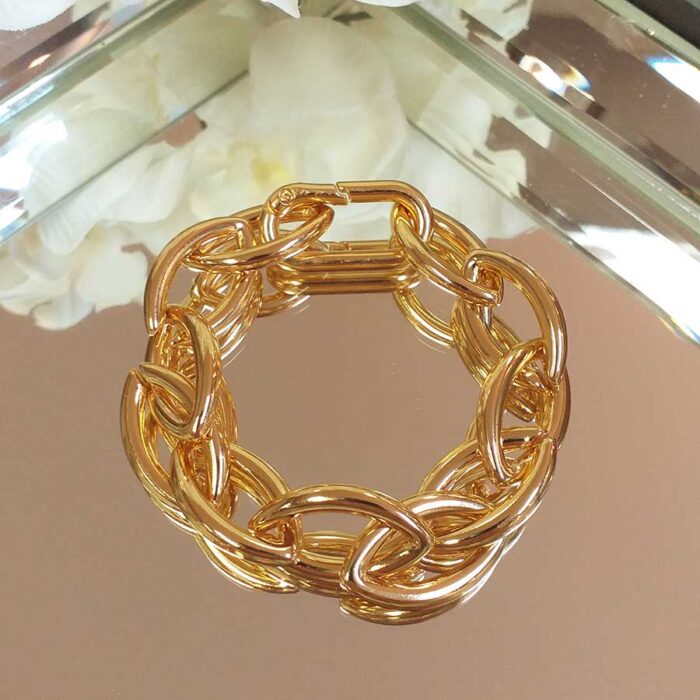 Pulseira de elos maçicos em forma de navete vazada – Peça banhada em ouro 18k